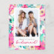 Una hermosa tarjeta de proposición de dama de honor floral. **POR FAVOR LEA ANTES DE COMPRAR** Nuestra pequeña gama de artículos de papelería de presupuesto mide 4,5" x 5,6" y se ajusta dentro de un sobre A6, que están disponibles en todo tipo de colores en su tienda de papelería local o usted puede añadir uno blanco a su pedido antes de realizar el pago. Cada hoja es una invitación - no se requiere corte. El material de cartón es blanco brillante con un acabado semi-brillante y peso de 110 libras, lo cual es adecuado para invitaciones. NO le aconsejamos que elija la opción de papel satinado ya que es un papel mucho más delgado de 80lb, que es más parecido a las páginas de revista que a las de cartón. Si prefiere una invitación clásica de tamaño 5x7 impresa en un material de 120lb con acabado mate, puede transferir este diseño a una tarjeta plana utilizando las opciones de diseño de transferencia. Las tarjetas planas no están dentro del rango de presupuesto, pero usted tiene una mayor variedad de tamaños y opciones de cartón y se envían con sobres. La forma y el tamaño más adecuados para el diseño aparecerán en las opciones de transferencia de diseño. Si realiza cambios en la forma o el tamaño o elige otro producto y el diseño está recortado de alguna manera o no aparece directamente en la página, necesitará usar el servicio de diseño activo para que alguien ajuste el diseño por usted, a menos que se sienta cómodo haciéndolo por usted mismo. Su pedido va directamente a las impresoras, de modo que lo que ve en la pantalla es lo que se imprimirá y se enviará a usted. Con esto en mente, por favor, compruebe tres veces si hay algún error ortográfico o información incorrecta antes de realizar el pedido.
