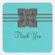 Regal y elegante Medallion Border Gracias Pegatinas con un medallón metálico de arte digital y un borde de tres rayas en un fondo turquesa. Estos audaces y elegantes pegatinas de agradecimiento son perfectos para un boda igualmente audaz y elegante y son fabulosos para favores o sellos para sobres. Fácil de personalizar, simplemente agregue los detalles de su boda en los campos de texto proporcionados. Haga clic en "Personalizar" para encontrar opciones de personalización adicionales como cambiar fuentes o tamaño de texto.