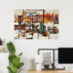 Una impresión digital de medios mixtos de emblemáticos monumentos y arquitectura de Texas combinados en una composición de montaje de color agua.