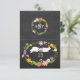 Una suite de invitados a la boda de bodas con una florida florida flor compuesta por una colorida flora de bosques. El fondo de la pizarra da a este diseño un ambiente relajado, ideal para los bodas al aire libre.