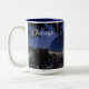 Una vista del horizonte y del puerto de Chicago del embarcadero de la marina de guerra de Chicago. Esta taza de la foto del horizonte de Chicago es un gran regalo para cualquier persona que ame la ciudad ventosa. Este arte fotográfico se tira del lago Michigan y acentúa el alcohol de la ciudad.
