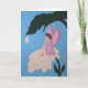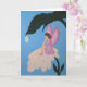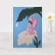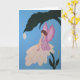 Una hada rosada contemplativa se sienta sobre una margarita, mirando anhelante en una gota de agua. Esta tarjeta se basa en mi pintura de hadas original de los deseos.