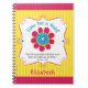 Un cuaderno espiritual inspiró por el verso, "él logrará infinitamente más que puede ser que pidamos o pensemos" (3:20 de Ephesians). Un reloj caprichoso de la flor lleva a cabo la escritura dentro de su cuerpo. La "e" en el centro representa "Ephesians." La hora se fija en el 3:20, que corresponde con el capítulo y el verso de la escritura. Dirija a www.timeforaword.com siempre que usted tenga "tiempo para una palabra." ¡No olvide personalizar su cuaderno!