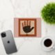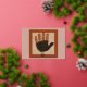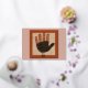 La ilustración clásica del pavo juguetón de Acción de Gracias de SlipperyJoe idea de manualidad clásica pulgar cabeza pico ojo completo dedos se convierten en sus plumas fuentes variadas tamaños atados gratitud agradecido familia amigos amor comida hogar reunión alegría salud fe artística cálida rústica sensación regalos del orgullo gay LGBTQIA fondo cuadrado texturizado naranja y beige