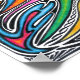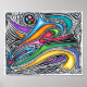 "The Leap" - Obra de A.E.G. Artistry: dibujo a mano con lápiz y lápices de colores en brillantes tonos de gema y audaces pinceladas negras, que representan una figura humana abstracta que salta por el aire.