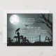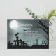 El texto de la parte trasera de esta invitación a la fiesta de Halloween "The Raven" es totalmente personalizable. Para cambiar el texto, utilice la opción de personalización. Para obtener cambios más extensos en la invitación, como cambiar el tipo de letra, el color de la fuente, el tamaño de la fuente o la ubicación del texto, elija la opción personalizar. Esta invitación está inspirada en el poema "The Raven" de Edgar Allan Poe e incluso incluye algunos de los frágiles textos del poema en el frente. También incluye un cementerio, un cuervo, algunas tumbas y algunos murciélagos para una atmósfera realmente espeluznante. Genial para tu próxima fiesta de halloween.