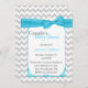 La invitación a la ducha de bebé de una pareja elegante realizada en un tono chevron gris claro y blanco. Gráficos de un área de texto blanco con bordes turquesa, en el centro, tiene una cinta color turquesa bonito y un arco, en la parte superior. El reverso se hace en el mismo patrón de chevron, con otro área de texto blanco, en la parte inferior. Personalice todo el texto, delante y detrás para adaptarlo a sus necesidades.