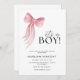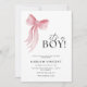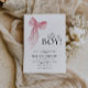 Celebra la llegada de un bebé con esta elegante y encantadora invitación a la ducha de bebé. Con un suave diseño pastel y un delicado arco rosado, esta invitación le da un toque de dulzura a su evento especial. Ideal para los padres que aprecian una mezcla de tonos azules y rosa sutiles.