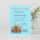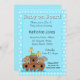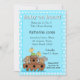 Invitaciones a la ducha arca de Noé con fondo azul acuático y el arca de Noé lleno de animales. Usa nuestra plantilla fácil para personalizar con tu información.