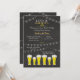 Un diseño moderno con luces de patio y vasos de cerveza espumosa contra un pizarrón negro y fondo. Perfecto para cualquier celebración al aire libre, en el patio trasero. (VOS)