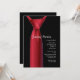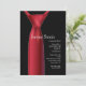 Una invitación elegante para una despedida de soltero con una corbata roja sobre una camisa negra. (Vtzy) <br/><br/>La tarjeta es fácil de personalizar con su redacción, fuente, color de fuente y elección de seis tipos de papel.<br/><br/>¿No es exactamente lo que está buscando? Todos nuestros productos pueden ser diseñados a medida para satisfacer sus necesidades sin cargo adicional.<br/><br/>Simplemente contáctenos en askpixieprints@aol.com.<br/><br/>Productos coordinados disponibles: