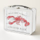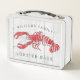Este diseño inspirado costero en esta fiambrera retra ofrece una langosta roja con su nombre persnalized arriba y las palabras "langosta cuecen" abajo. Diseñado por el ©Tim renombrado Coffey del artista del mundo.