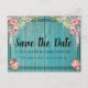 Este rústico bonito, salvo la postal de fecha, presenta un fondo de madera azul con una tipografía de moda decorada con un ramo floral de color rosa acuático. Personalizar el tipo de letra y el color del texto a su gusto.