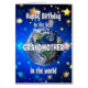 ¡Celebra a tu abuela con un toque cósmico! Esta tarjeta presenta una impresionante vista de la Tierra desde el espacio, con el más sincero mensaje: "Feliz cumpleaños a la mejor abuela del mundo". Una manera perfecta de mostrar lo que significa para ti, sin importar la distancia, ella es siempre tu número uno.