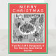 Tarjeta de Navidades divertidos con una escena que muestra una mesa de cena que colapsa bajo el peso de toda la comida. ¡Un hombre rociando pimienta es la causa! Divertido ilustracion personalizado de Navidades en una tarjeta de Navidad.