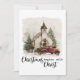 Tarjeta de Navidad La Navidad comienza con Cristo con Camioneta Roja Vintage Acuarela.