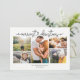 Sencilla tarjeta de vacaciones de colaje de 5 fotos con un guión caprichoso y adorable que dice La Navidad más alegre con una conexión de corazón escrita a mano. Espacio para tus 5 fotos familiares favoritas y mensaje. En la parte posterior hay un patrón de puntos minimalista dibujado a mano.