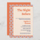 Sumérjase en una cápsula del tiempo de la nostalgia de la moda con nuestra invitación a cenar "La noche antes del ensayo". Diseñado para transportarte a los glamorosos años 60, esta invitación es una armoniosa mezcla de sofisticación vintage y estilo contemporáneo. El frente de la invitación presenta un patrón clásico, que abarca colores audaces y contrastantes que preparan el escenario para una celebración diferente a cualquier otra. Añade tus propios detalles haciendo clic en la opción "personalizar". En la parte posterior de la tarjeta, puede agregar su propia imagen de código QR o generar una mediante las herramientas de personalización de Zazzle o borrar y reemplazar el texto.