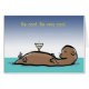Una natación linda de la nutria del dibujo animado en el agua con una bebida de lujo. ¡Muy fresco! (El texto en el frente es editable. Usted puede también suprimirlo, si usted quiere.)
