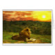 León que mira una opinión de la puesta del sol