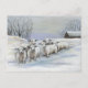 Esta postal muestra una reproducción de mi original pintura pastel de ovejas en la nieve.