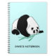 Cuaderno personalizado: Una panda ilustrada blanco y negro que celebra brotes de bambú verdes en su pata y que los come.