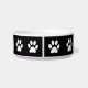 Cuenco del perro de las impresiones de la pata pequeño con las patas blancas y el fondo negro y un lugar usted puede añadir sus perros conocidos haciendo esto un diseño con clase del cuenco del mascota. Utilice el suyo para un plato del agua, el plato de la comida, o el atrapador para todas sus invitaciones del perrito.