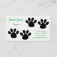 Esta tarjeta de visita de la diversión es perfecta para un groomer del perro. Tiene dos sistemas de impresiones negras de la pata en el frente con el texto verde. La parte posterior ofrece un sistema de impresiones enormes de la pata.