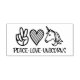 ¡Declare la "paz, el amor y los unicornios" con un sello que se auto-tinta que incluye manos de paz, corazón y gráficos unicornios! Disponible en varios colores.