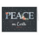 La paz en la tierra está escrita en las estrellas. El fondo negro, lleno de estrellas, inicia la palabra PAZ. La palabra principal está decorada con puntitas y franjas de flores. Hermosa y memorable tarjeta para enviar a estos Navidades!