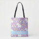 Un modelo lindo y colorido hecho usando algunas de las cosas preferidas de una niña. Incluyen un pequeño unicornio blanco lindo con la melena del color en colores pastel del rojo, del amarillo y del azul. ¡También incluye diversos elementos decorativos en la misma paleta de color como las estrellas, el caramelo de algodón, las flores, el caramelo, el lollipop, las hojas florales, los corazones, helado del popsicle, la magdalena y el arco iris! El fondo púrpura se puede cambiar en modo del arreglo para requisitos particulares. Personalice con el nombre del chica para hacer esto una bolsa de asas especial para guardar los artículos preferidos de la niña.