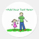 Padre e hija se toman de la mano. La camisa del padre decía "papá" y la camisa de la hija decía "yo". Las figuras tienen el pelo rubio. Puede personalizar este producto con su propio texto.