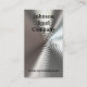 La superficie circular del modelo de las ondulaciones o de ondas de una mirada del metal plateado es una tarjeta de visita de mirada única y profesional. Fácilmente personalizar con su propia información. Utilice la fuente negra mostrada o cambie fácilmente el estilo de fuente y/o coloréelo para el arreglo para requisitos particulares completo. Una gran tarjeta para industrial, construcción, edificio, automotrices, y otros empleos de comercio hábil, así como otros profesionales artísticos del diseño. Más información se puede poner en la parte posterior también sobre el fondo metalizado de la mirada. Impreso en el papel, metal no real. Una tarjeta de visita fuerte que se destaca del resto.