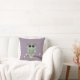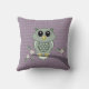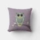 Personalizado Americano MoJo Cojín decorativo 20" x 20" tiene un búho verde en una extremidad con flores y un fondo de polka punto púrpura.
