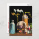 ¿Qué está cocinando? Este ilustracion vintage con botellas de colores, panaderías y jarras es perfecto para cocineros, viticultores, cerveceros y químicos por igual, incluso mágicos. El colorido arreglo tiene una variedad de vasos, líquidos misteriosos y bocanadas de vapor.