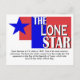 La postal "La estrella solitaria" es una gran manera para los texanos y visitantes de Texas de enviar notas a amigos y familiares en otras partes del país o del mundo.
