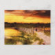 Una reproducción vintage de la pintura de Thomas Moran de 1907 "La Hora de Oro". Esta encantadora obra de arte muestra a una mujer caminando por un sendero justo al atardecer. A lo lejos se ve un molino de viento, y agua y puente en primer plano en esta hermosa escena paisajística.