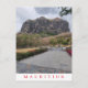 Una hermosa vista de la montaña Le Morne Brabant en Mauricio impresa en una postal.