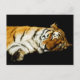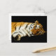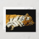 Fotografía de un tigre durmiendo de Amur sobre un fondo negro. También conocido como Tigre Siberiano, el Amur está muy cerca de extinguirse en la naturaleza. Solo quedan unos cientos. El tigre de Amur se extinguió en Corea del Sur en 1922, desde entonces ha habido esfuerzos de conservación para salvar esta especie. Nuestros esfuerzos para salvar esta especie parecen estar fallando, con la población de tigres que sigue cayendo debido a la caza y la pérdida de hábitat.