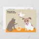 Postal linda para el negocio que se sienta del mascota. El gato está alimentando un goldfish y un perro se sienta cerca. Un cockatoo está en un oscilación arriba.