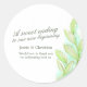 La primavera deja dulces o dulces dulces bodas pegatinas en tonos verdes y blancos. Estos pegatinas se pueden usar para su mesa boda de caramelo, para cajas de favores, o bolsos de agradecimiento / favor. Personalizar con su nombre y sus propias palabras de agradecimiento, actualmente dice Un dulce final a nuestro nuevo comienzo, Jennifer & Christian Me encantaría agradecerle por celebrar con nosotros. Diseñado por Sarah Trett.