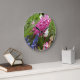 Flores de Hyacinth rosa y Muscari morado/azul en este reloj de pared