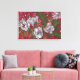 Lienzos impresos con flores hermosas - lirios peruanos blancos con hojas verde musgo sobre fondo rojo vid. Dibujo de la vida en el libro de bocetos del artista, medios mixtos - collage de papel tisular y boceto de lápiz de tinta. © Julia Khoroshikh www.juliakhoroshikh.art #collageart #papercollage #floralart #contemporaryfloral #botanical #mixedmediaart #posters #wallart #zazzlemade