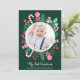 Esta tarjeta de Navidad de recuerdo del primer bebé de Navidad presenta follaje de acuarela pintado a mano, bastones de caramelo de menta y dulces. Esta tarjeta es ideal para una familia que tiene un nuevo bebé o son padres primerizos y les gustaría celebrar esta temporada de Navidad. En la parte delantera puede agregar su propia foto y cambiar el texto y en la parte trasera puede escribir su propio mensaje de Navidad. Vea toda la colección coincidente.