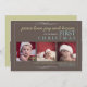 El mensaje de vacaciones dice 'paz, amor, alegría y besos, es<baby's>primera Navidad' en este diseño muy dulce que está personalizado con el nombre de tu bebé y que incluye tres fotos. En verde sabio y verde azulado sobre un fondo marrón mocha de moda, es divertido y definitivamente único. También disponible en un esquema de color rosa para chicas: