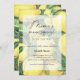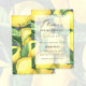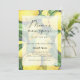 Cute acuarela amarillo tema limón género neutro tarjeta de invitación a ducha bebé con ilustracion de un patrón de limones y hojas. Frutas cítricas.