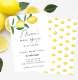 Cuta temática de limón género neutro tarjeta de invitación a la ducha bebé con ilustracion de un limón con cítricos. Utilice las herramientas de diseño para editar el texto, cambiar el color de fuente y el estilo para crear un diseño único de tipo invitación.
