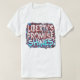 Una camiseta de inspiración vintage con las palabras "La promesa de la libertad brilla" en una fuente angustiada y con letras a mano, que recuerda a una bandera estadounidense clásica.