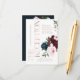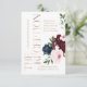 Audaz, elegante y romántica carta de la recepción de la boda con nuestras elegantes y pintadas flores acuáticas. Hermosos y audaces arreglos florales con profundas flores burdeos, azul marino rico y rosa rubio con acentos de hojas de salvia verde y vegetación. Las flores están dispuestas en bonitos ramos para crear este elegante y audaz diseño floral. La recepción se exhibe en un elegante diseño de tipografía de oro rosa con detalles de la recepción de bodas muy bien arreglados. Flores acuáticas pintadas por Moodthología.