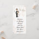 Este dulce marcador de agradecimiento de boda tiene un fondo blanco con suaves campanas de boda y presenta a una novia y un novio. El diseño fue creado por Sketchart26 utilizando obras de arte de Delightful Doodles.